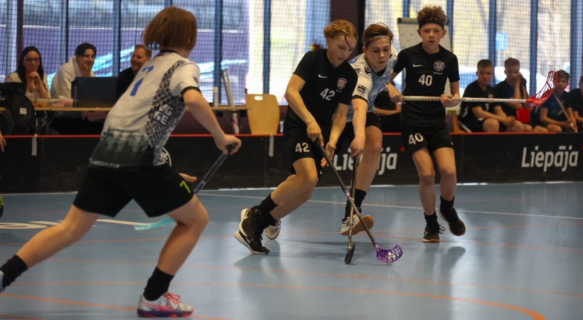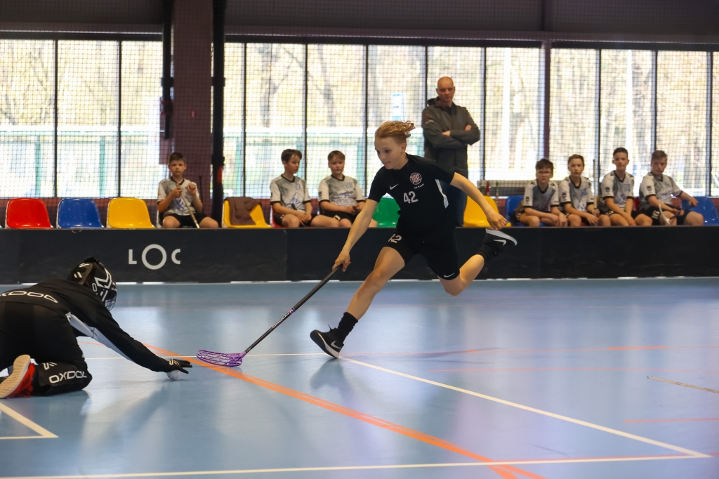 Latvijas Bērnu un Jaunatnes čempionāts florbolā, U13 grupā: FK Kurši - Ogres Vilki, LOC Manēžā, (29.04.2022). Foto: Ģ.Gertsons, FK Kurši